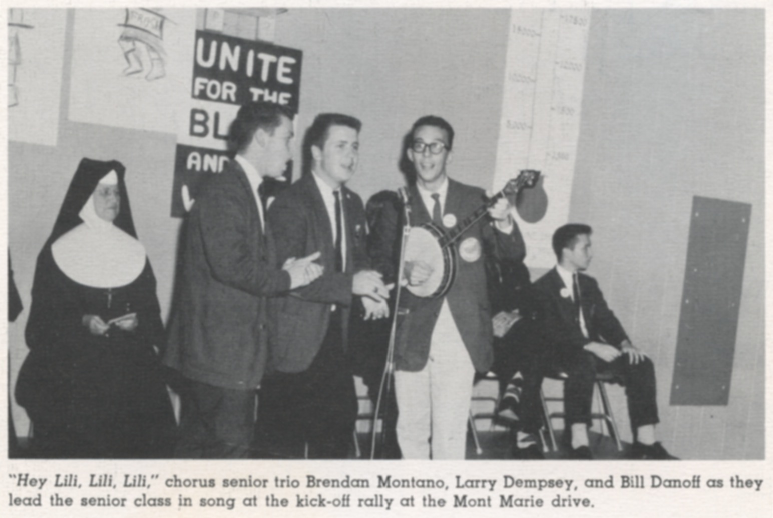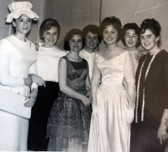L-R: Frances Veale Cornwell, Janet Boyer Hourihan, Patricia Kelley Conz, Anne Murphy Kellner, Trudy O’Malley, Maureen Springs Fontaine, Caroline Demers Tougas, Pater Mulvagh, Joan Hamel Sagendorph, Karen Lariviere Audette, Kevin Hourihan. Jacqui Artiano Ruest, Nancy Thompson, Tom Sheedy, and Bill Devlin.